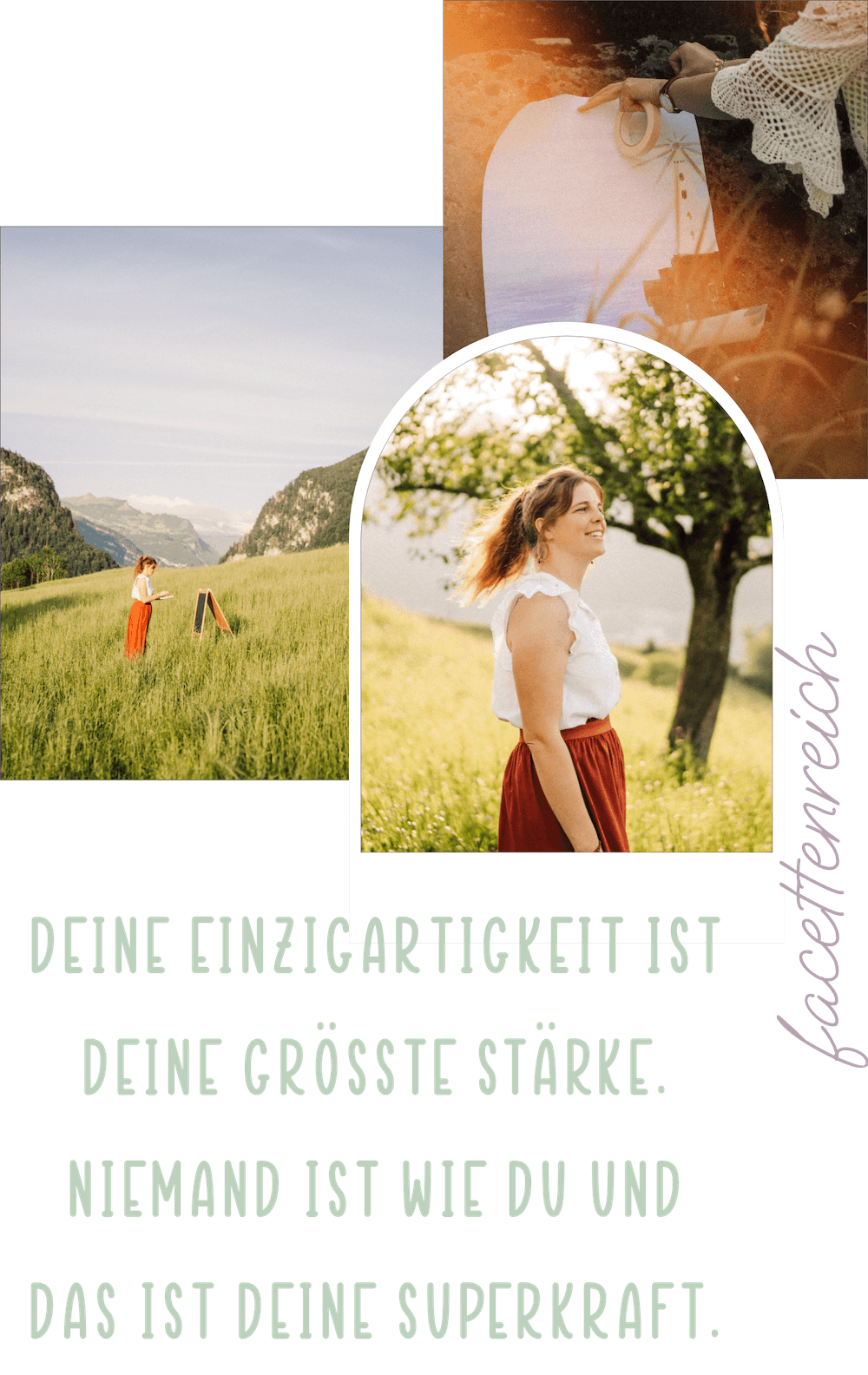 Ich bin eine Frau, die es liebt, Neues auszuprobieren und Ideen zu entwickeln. Veränderung und Wachstum sind mir wichtig, ebenso wie Beständigkeit und Verwurzelung. Mit all meiner Erfahrung kann ich mir täglich ganz viel Seeläruäh gönnen und das wünsche ich dir auch.