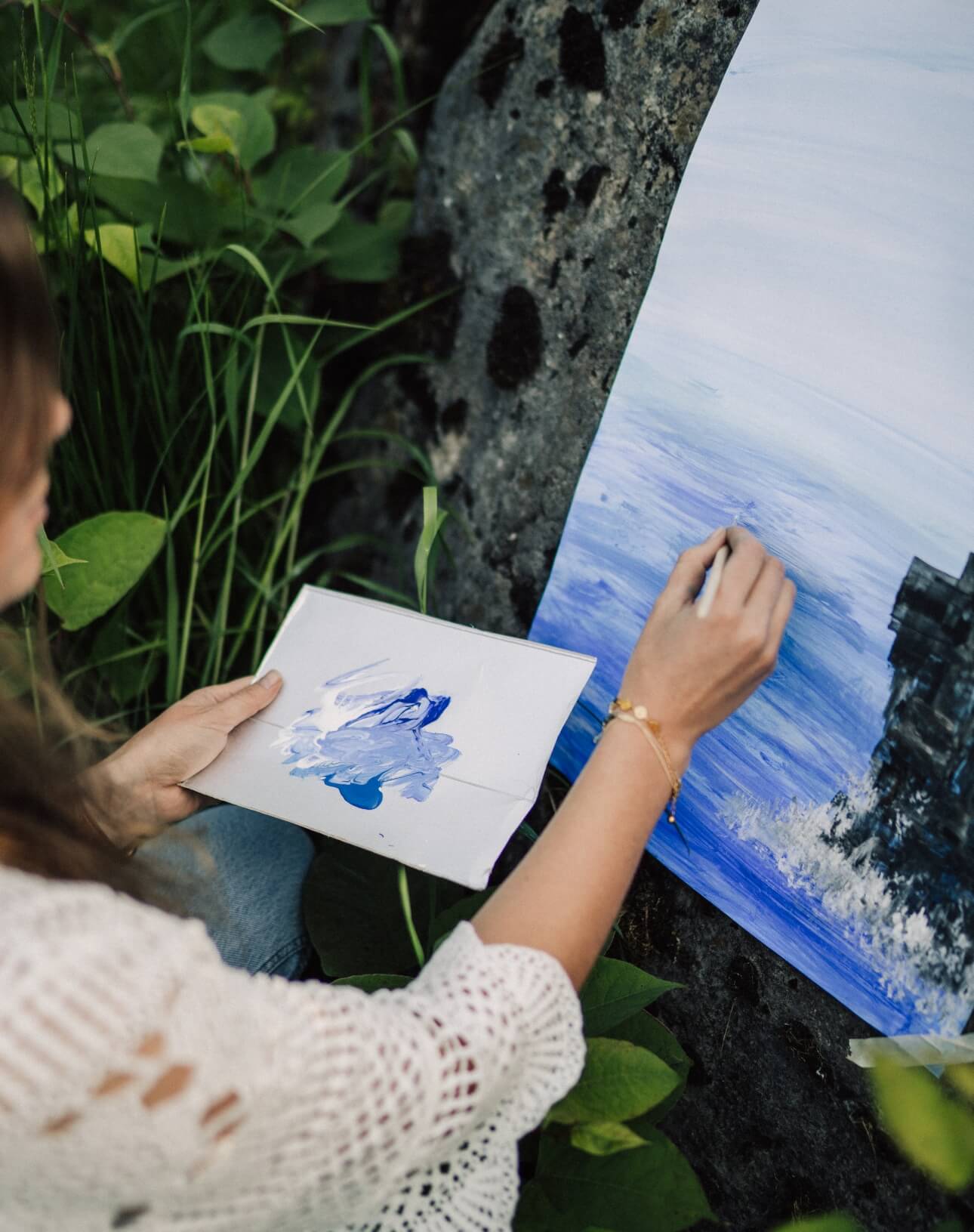 Im kreativen Teil der Sitzung darfst du malen, gestalten und kreieren. Dadurch werden deine Themen sichtbar und greifbar. Alles, was sich zeigt, kannst du auf deine „Art" ausdrücken, verwandeln und in neue Bahnen lenken.